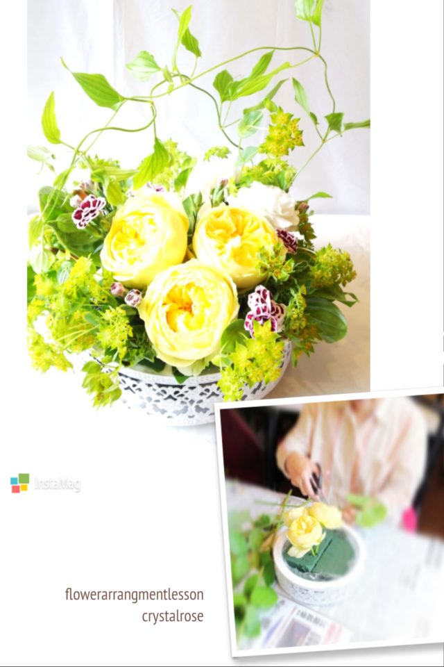 この日のレッスンはNFDの必須の試験課題のテーマではなくテーブルアレンジメント。